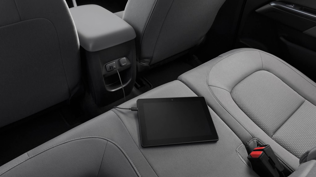 Another amenity on the interior of the Colorado is the Chevrolet MyLink 8-inch diagonal color touch-screen … yes, touch screen. The center console also includes a USB port to charge your tablet or phone.