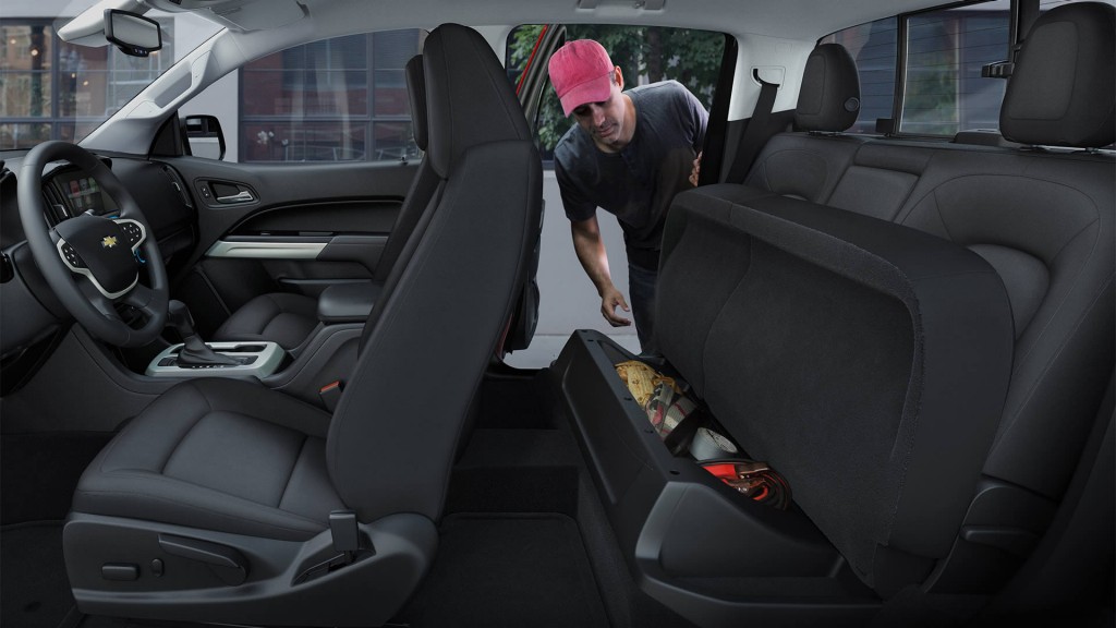 Passengers will have no trouble stretching out their legs in the Colorado, because even though the pick-up is nearly six inches narrower than a Silverado 1500, it has a much more spacious interior.