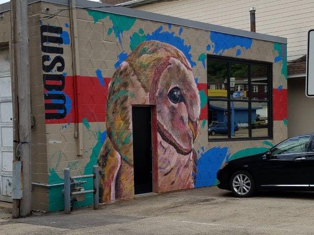 - The mural features a barn owl, which is an endangered species in Iowa. It includes the letters WSDM, shorthand for the word Wisdom along the side of the painting.