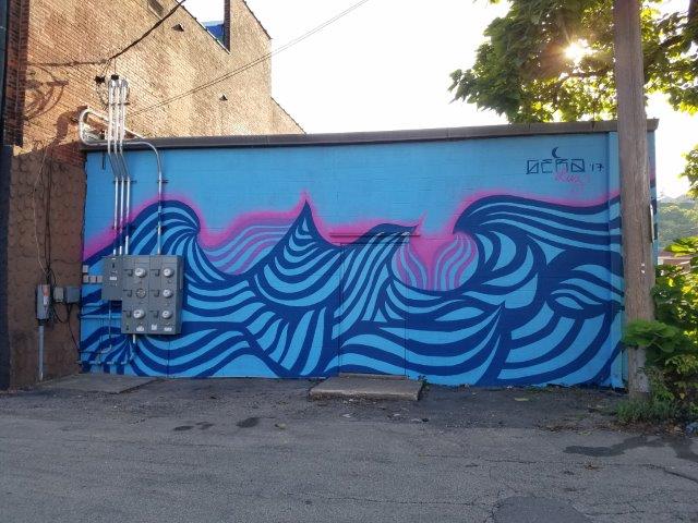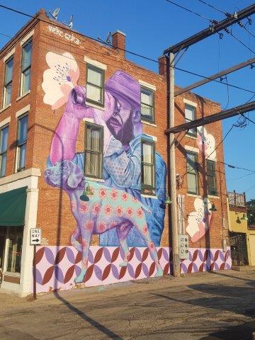 - “The design is inspired by the Mississippi River, and the captivating movement of water. The mural captures a moment of water waves dancing with the current.” -Lozano